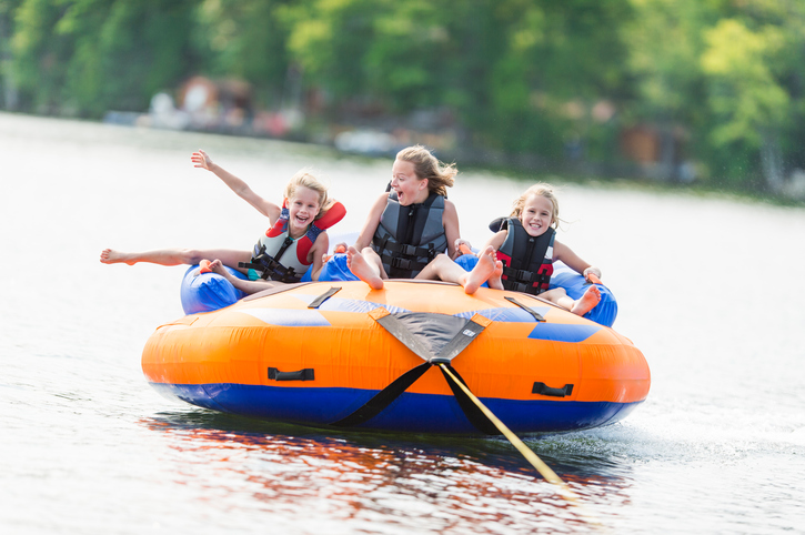 Water tubing is a uniquely thrilling and unforgettable water sports experience. It is one of the best outdoor family activities. You are lying on the towable while your family and friends are in the boat pulling you along; they pick up the speed and you hold on tight, eventually flinging off into the water. It's easy and appropriate for all ages.